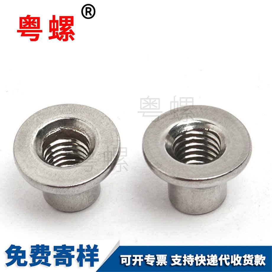 廣東粵螺五金實(shí)業(yè)有限公司公開(kāi)了一種低碳鋼鉚螺母緊固在薄壁、薄板上的緊固件,它由帽沿、變形裙部、螺紋絲孔構(gòu)成鉚螺母緊固件。采用低碳鋼冷擠,將帽沿冷鐓成型,在凹模內(nèi)擠壓出變形裙部,在變形裙部的下端擠壓出螺母攻絲裙部的螺紋絲孔。其特征是帽沿的下方有魚(yú)牙齒;螺紋絲孔下端的外側(cè)具有導(dǎo)角;螺紋絲孔的內(nèi)壁的螺紋的斷面呈等腰梯形,梯形的上底為凹孤形,該緊固件不用焊接,單面鉚接,操作簡(jiǎn)便,連接牢固。