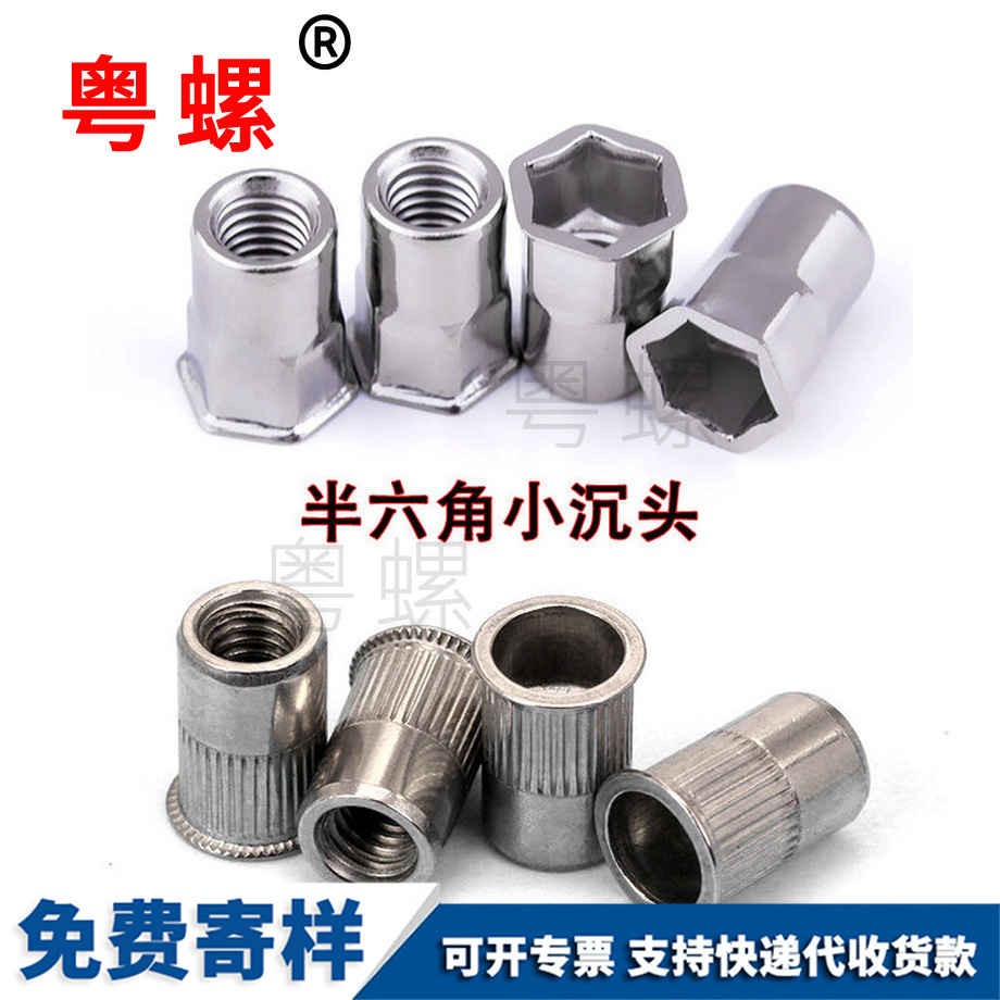 壓鉚螺母的安裝是有講究的,如果安裝方法不正確就會出現(xiàn)壓鉚后鉚不牢固的的現(xiàn)象。如我們曾經(jīng)有個客戶反映說鉚壓后螺母會掉下來,我們技術(shù)人員到現(xiàn)場后發(fā)現(xiàn)很多客戶是用鐵錘或其他沖擊方式敲擊上去的,因為壓鉚螺母用這種安裝方式會導(dǎo)致壓鉚螺母受力不均勻而嚴(yán)重影響壓鉚效果,表面看上去是壓進(jìn)去了,但實際上壓鉚螺母的花齒根本沒有和板鉚合,這樣是肯定鉚不牢的。安裝壓鉚螺母一定要用專門的安裝設(shè)備,或者簡單一點用壓力機(jī)及沖壓設(shè)備安裝(一般工廠都會有這些簡單的設(shè)備)。