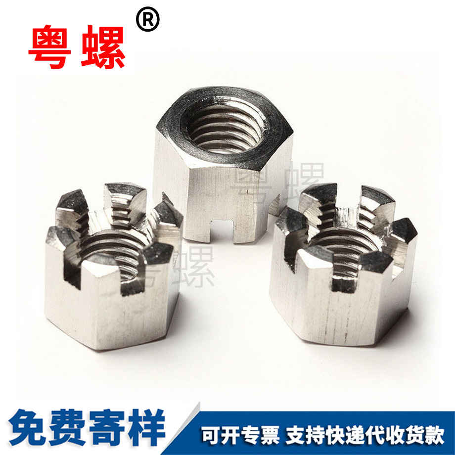 粵螺生產(chǎn)304不銹鋼 1型六角開槽螺母 GB6178開槽螺帽 槽型螺母 M8