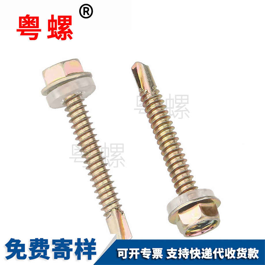粵螺加工鐵彩鋅 外六角華司 帶墊尖尾螺絲 彩鋼加長自鉆螺絲釘 M6
