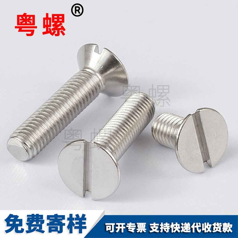 粵螺訂做304不銹鋼 沉頭螺絲 一字螺釘 平頭開槽螺栓 M5