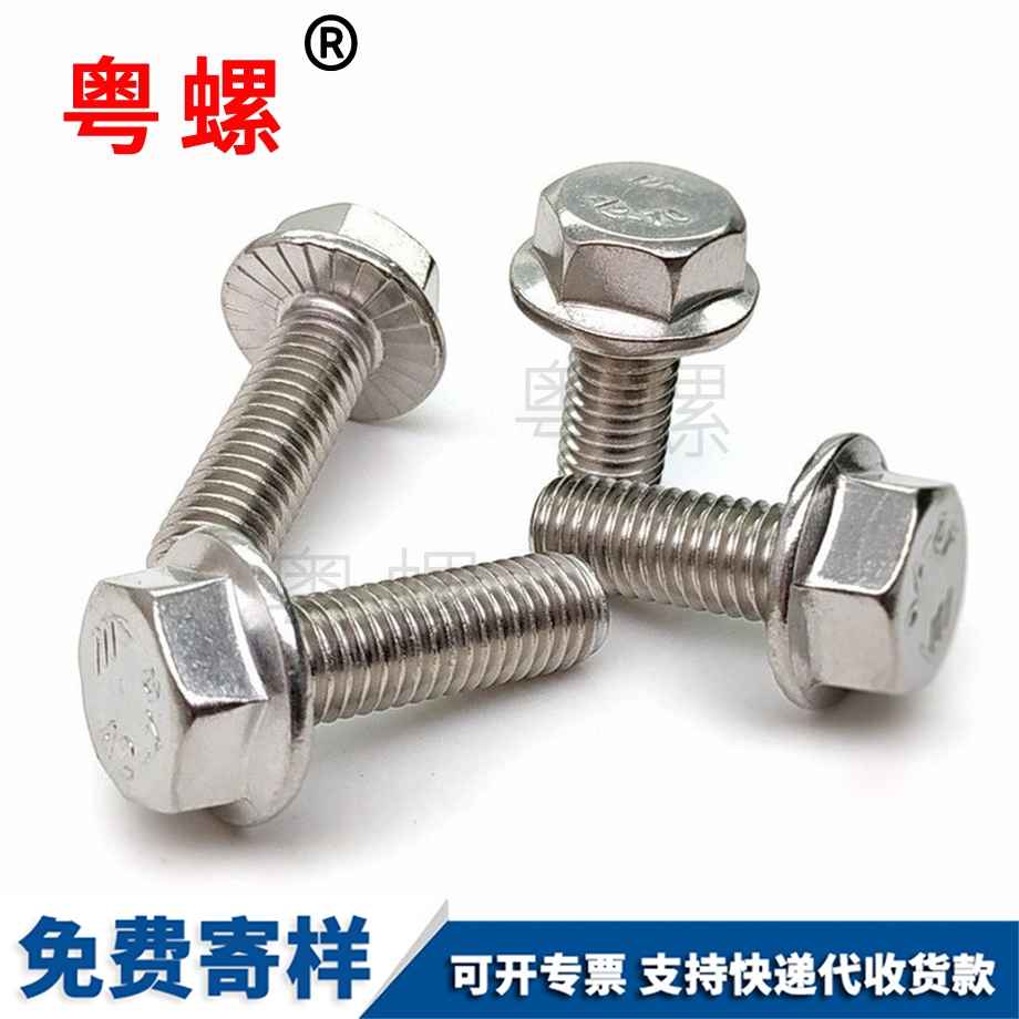 粵螺訂做法蘭螺絲 外六角法蘭面螺栓 帶墊防滑螺釘 帶齒釘 M8