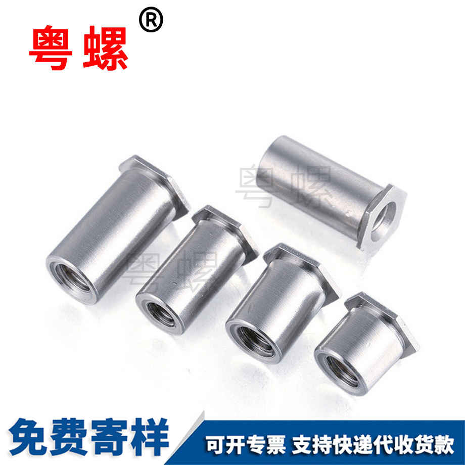 壓鉚螺母的優(yōu)勢:1、實現(xiàn)了距離范圍的長度保證,大大簡化了裝配過程,并加快裝配式間距面板和配件的生產(chǎn)進度;2、板材背面保持完全嵌平,同時保證了螺母柱頭部與板材平面光滑;3、原材料采用易切削鐵或易切削不銹鋼;壓鉚螺母柱應(yīng)用技術(shù)指南:1、選用螺母柱時,必須根據(jù)所用板材的厚度,確實尺寸范圍,低碳鋼板材硬度必須小于70RB,不銹鋼板材硬度必須小于80RB。2、易切削鐵表面進行處理,不銹鋼保持原色,用戶可根據(jù)需要按表中型號規(guī)格定貨,也可根據(jù)需要特別訂制。3、板材孔尺寸必須照0-+0.075mm的公差尺寸進行加工,建議沖孔。4、安裝必須通過“壓鉚”作業(yè)實現(xiàn),切不能沖擊敲入。5、材料選用不銹鋼時,尾部號用“S”注明。6、螺母柱端面為直紋齒的用“C”表示。7、通孔螺母柱長度10mm以下皆為滿絲,在10mm以上可六角端面方(Ⅰ型)或圓端面方面擴孔(Ⅱ型)。
