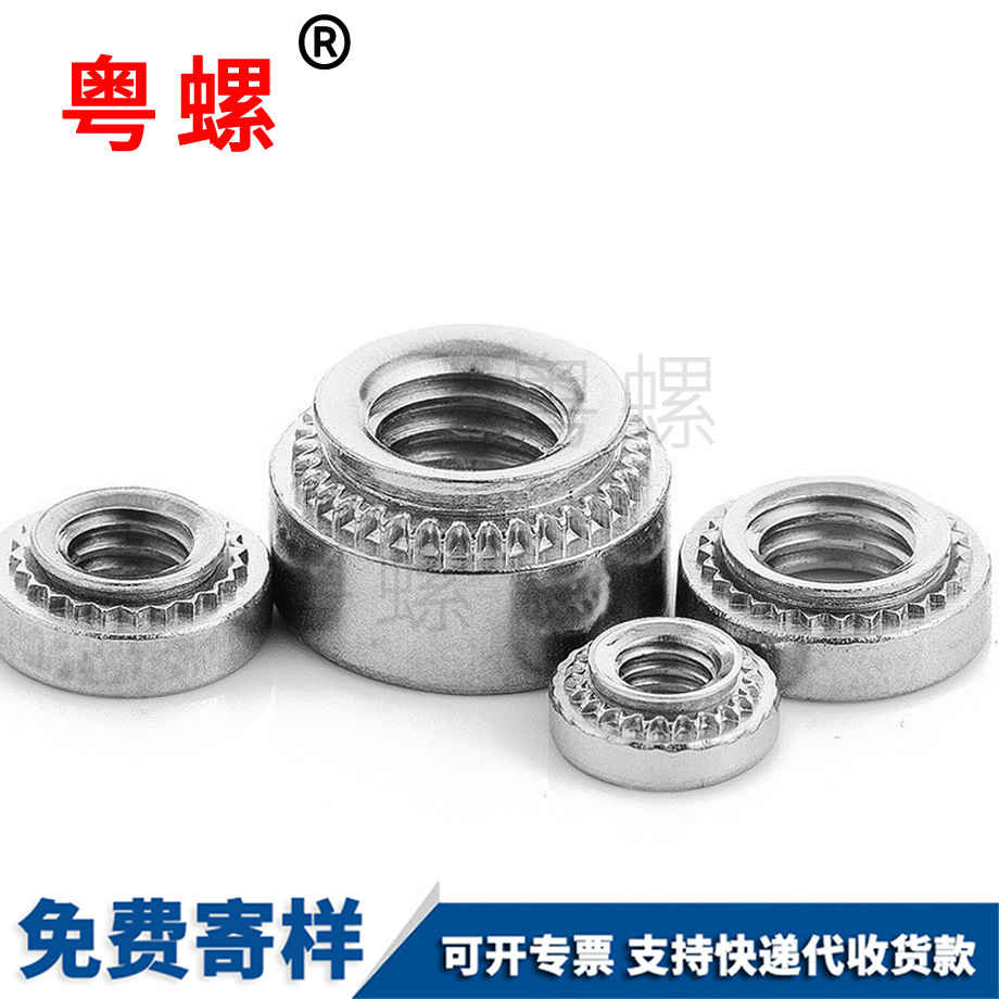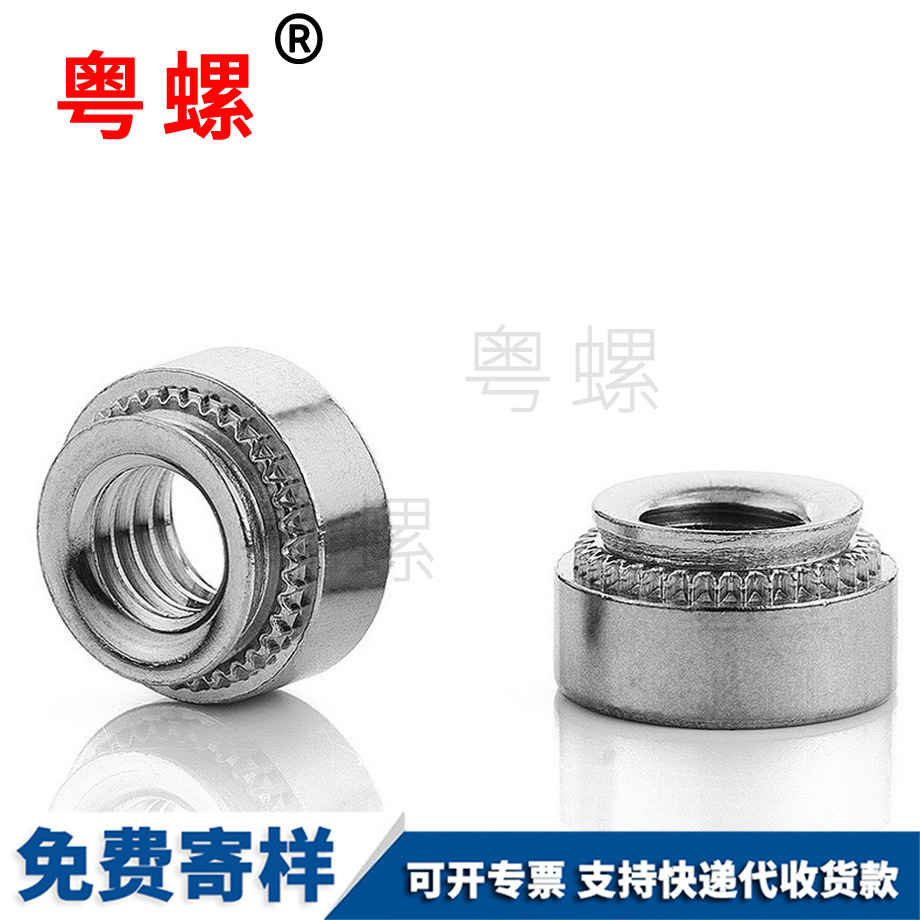 在鈑金和鋁型材加工中需要用到很多壓鉚螺母柱。但現(xiàn)有的壓鉚螺母柱在壓鉚時(shí)與被壓板材間一般都采用間隙配合,這種配合對一般要求的壓鉚是沒有影響的,但對表面質(zhì)量要求很高的鋁型材,尤其是噴漆鋁型材會(huì)有一定影響,一是由于鋁型材上的壓鉚底孔一般在普通沖床上加工,這樣會(huì)產(chǎn)生一個(gè)帶喇叭的錐孔,這樣更加加大了壓鉚螺母柱之間的間隙,使相互的包緊力更小,造成有的鋁型材組件在裝螺釘時(shí)壓鉚螺母柱松動(dòng),造成表面質(zhì)量不合格,因此,我們迫切需要一種能減少與鋁型材壓鉚底孔的配合間隙的壓鉚螺母柱,以增加壓鉚螺母柱與鋁型材孔之間的包緊力。