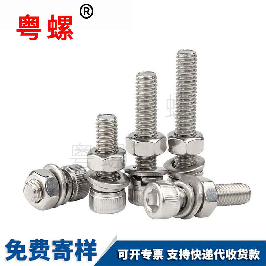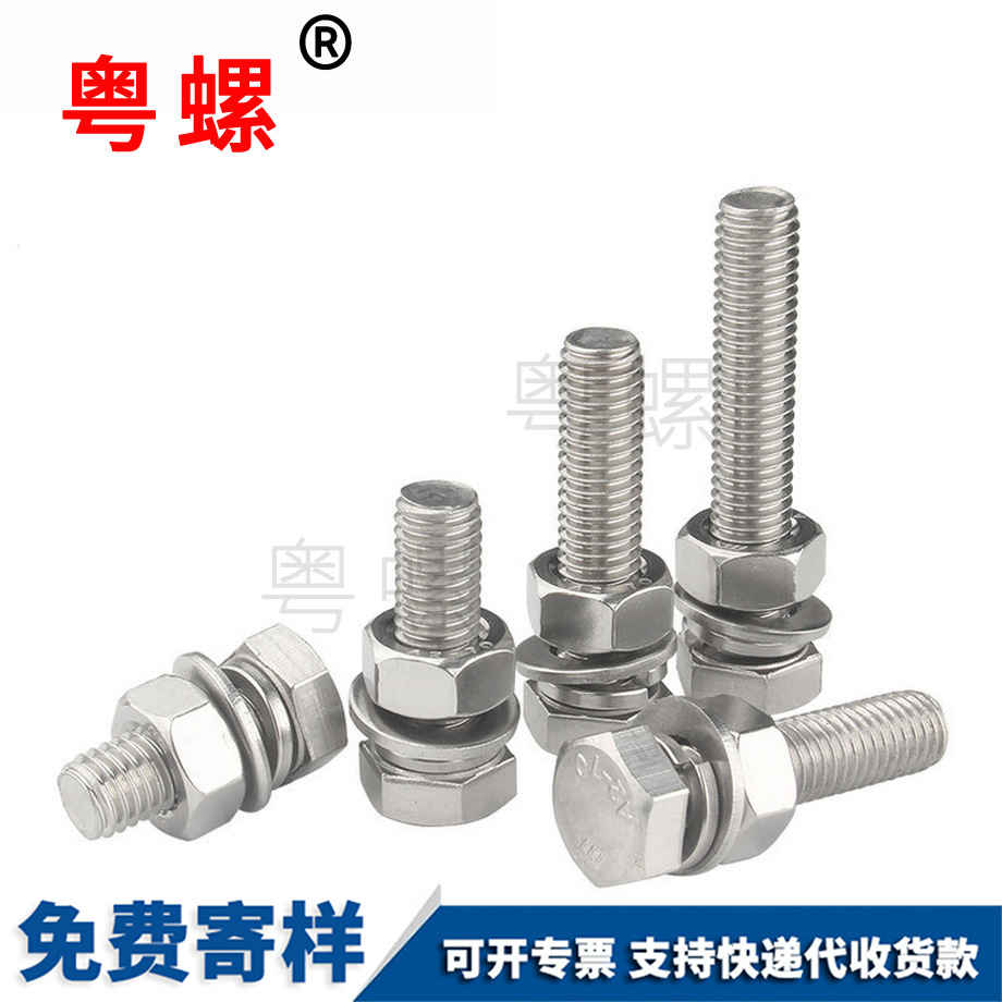 加工304不銹鋼 外六角三組合帶墊片 螺絲 彈墊十字槽組合 螺栓