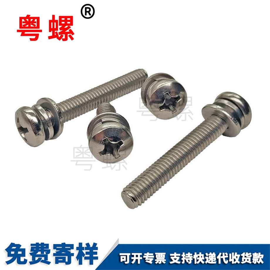 粵螺定制盤頭組合螺絲 圓頭十字三組合螺釘 半圓頭組合螺栓 M4 M6