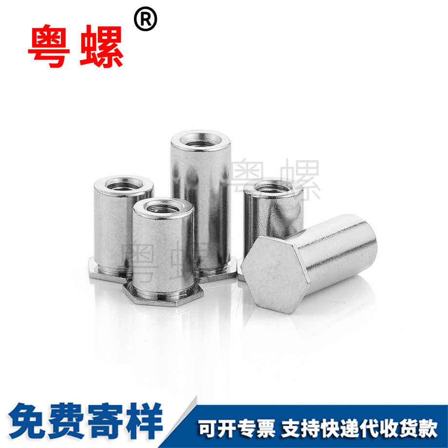 訂制304不銹鋼 平頭六角壓鉚螺柱 盲孔壓鉚螺母 BSO壓鉚螺柱 M4