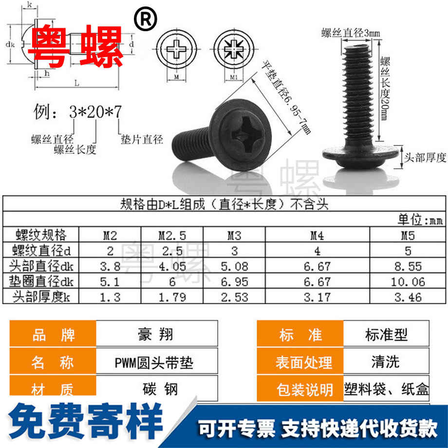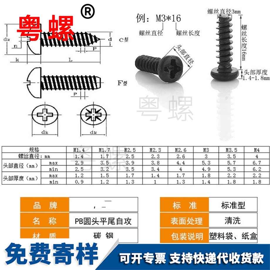 粵螺加工碳鋼黑色 十字槽自攻螺絲 盤頭自攻絲 平尾圓頭自攻釘 M4